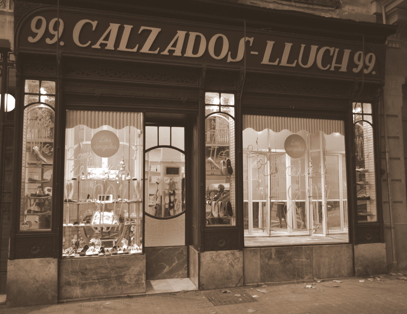 Al número 99 del carrer del Comte Borrell es troba una de les botigues més antigues de Barcelona: Calzados Lluch, oberta al 1899 i que era alhora sabateria i taller.